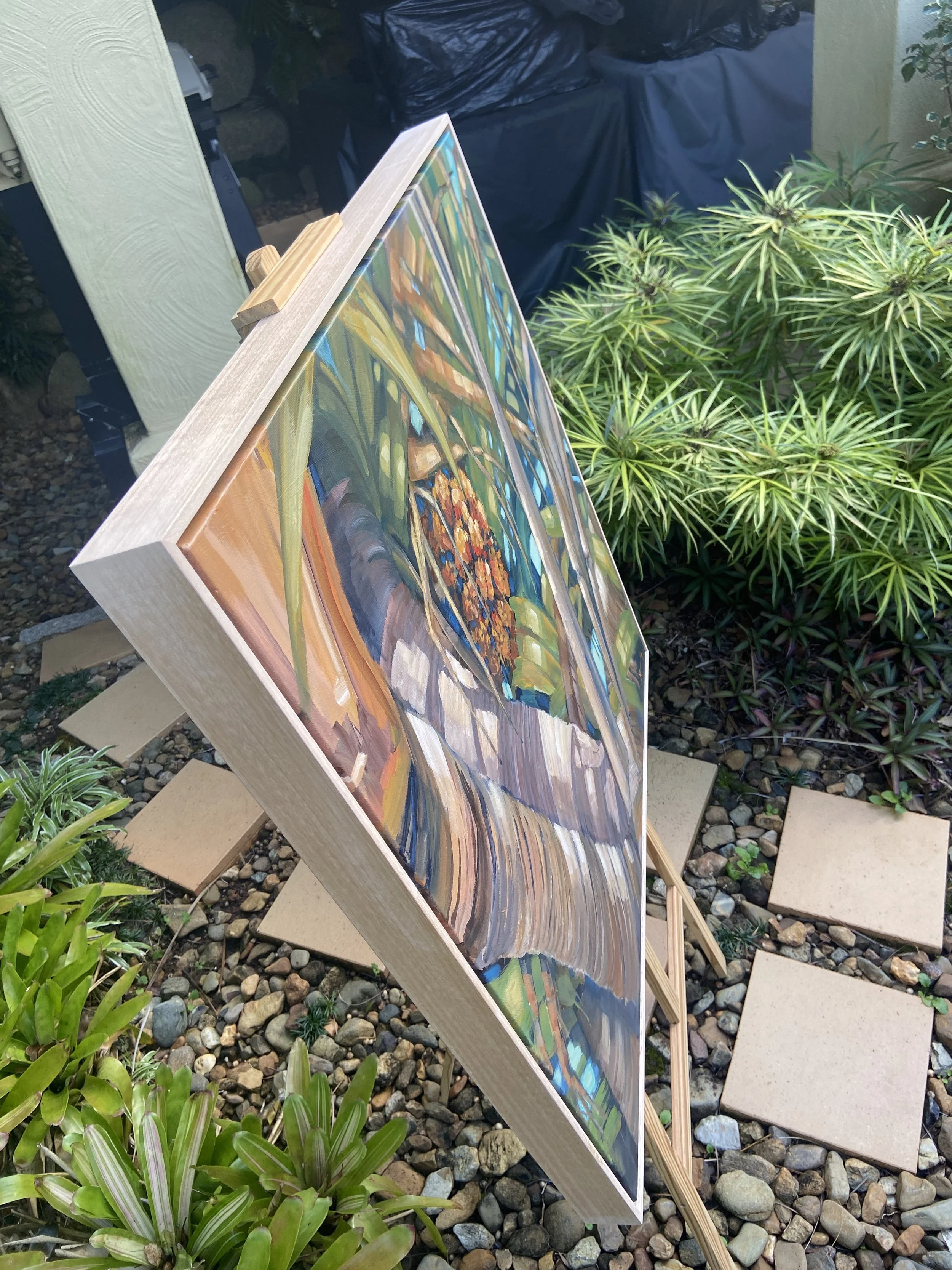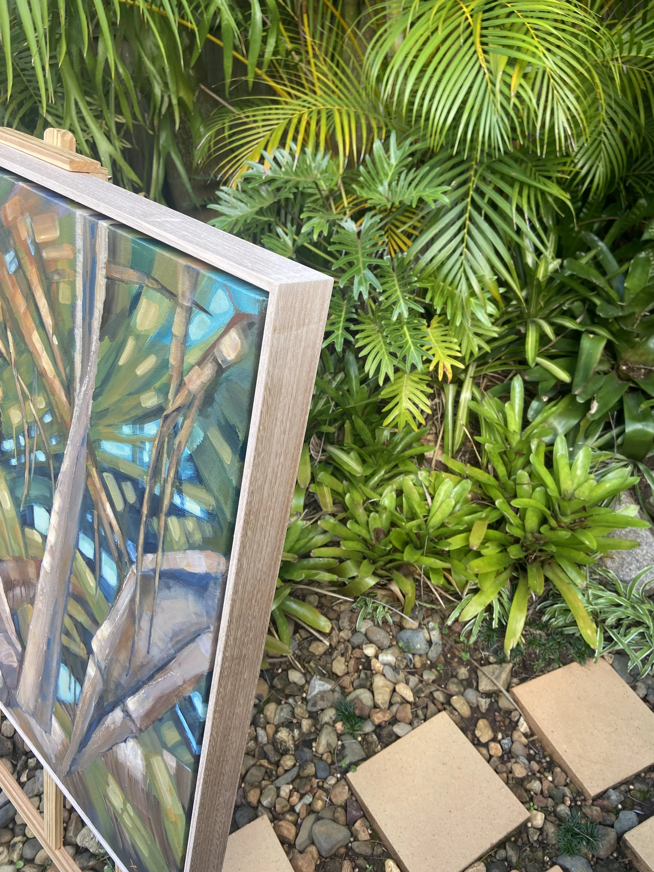 Original acrylic on stretched canvas, in a natural oak floating frame, ready to hang. Framed dimensions are 80cm x 80cm with a 5cm profile. Comes with a certificate of authenticity.